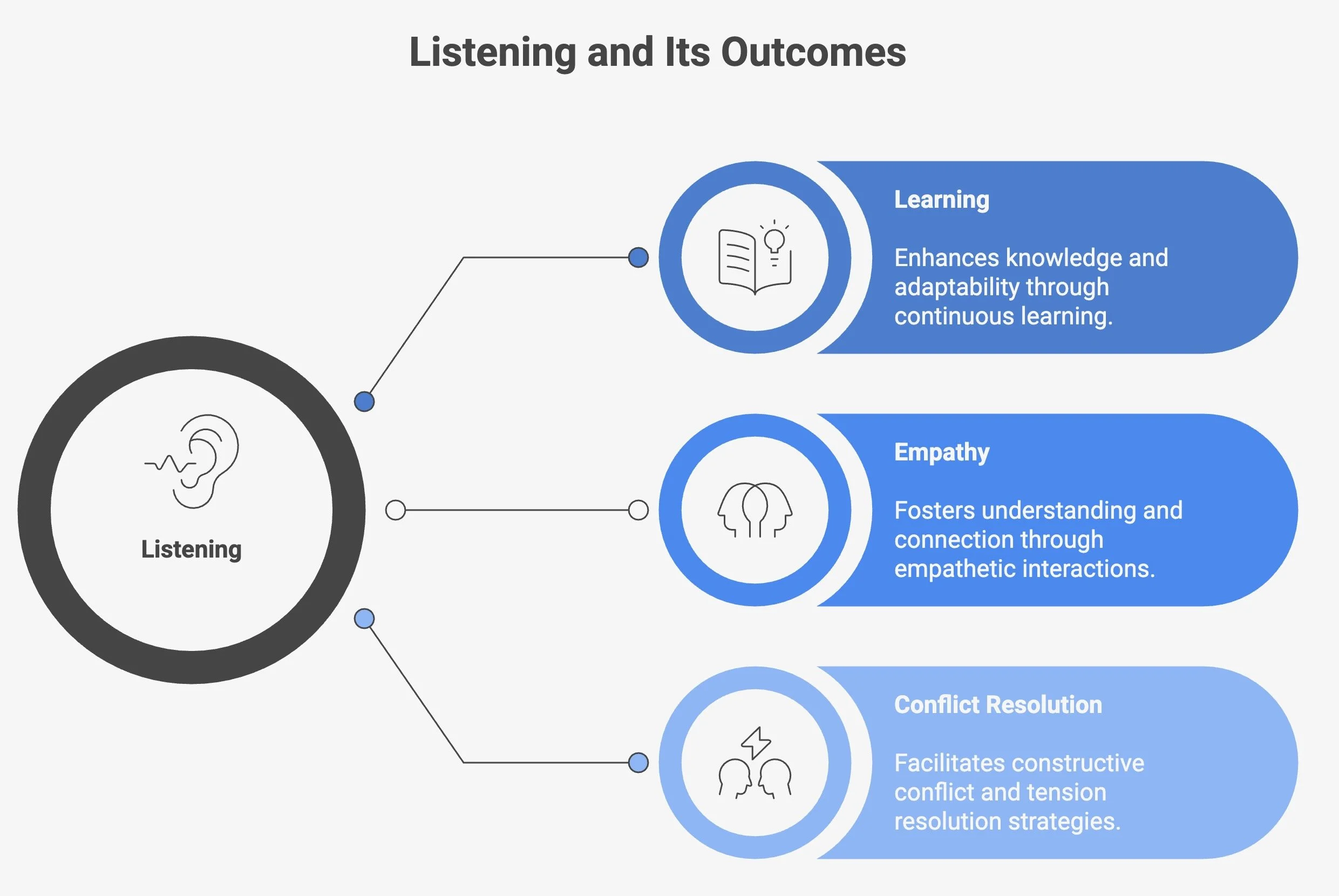 Listening is a “hub” skill, a central ability which both enables and improves other abilities. Listening enables and improves some of the EQ skills which great SEs need to have: learning, empathy, and conflict resolution